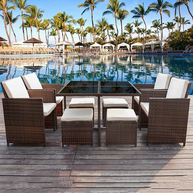 Venda a retalho Preço adequado Melhor qualidade mobiliário de vidro de rotão para o exterior Mesa de jardim com popular cadeira de jardim de dupla utilização